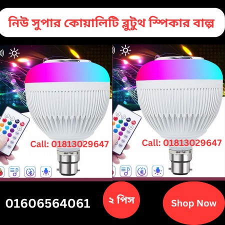 # ২ পিস Bluetooth স্পিকার বাল্ব * ৮ কালার লাইট *রিমোট কন্ট্রোল * ৩.৫ ইঞ্চি ইস্পিকার Bluetooth Speaker + Remote Control Light Bluetooth 4.2 This bulb has a Bluetooth speaker so you can play music in this bulb Change Light Color by Remote It has 8 Colors of Light. You can change the light color using the remote. Can fit in any light holder.